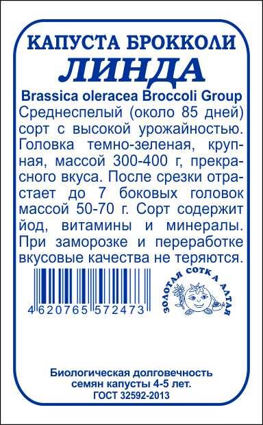 - Капуста брокколи Линда б/п /Сотка/ 0,3г/ среднесп. 300-400г/*1200