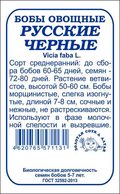 Бобы Русские черные б/п /Сотка/ 5г/ среднеран. h-50-60см / ФАСОВКА ПО 10шт/*500