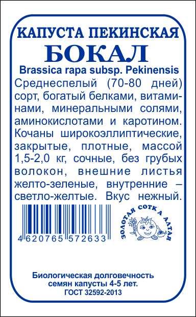 Капуста пекинская Бокал б/п /Сотка/ 0,3 г/ср.1,5-2кг/ среднесп. 1,5-2кг /*1200