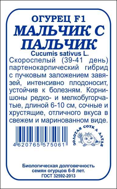 Огурец Мальчик с пальчик F1 б/п /Сотка/ 5шт/ партен. раннесп. 6-10см/*2000