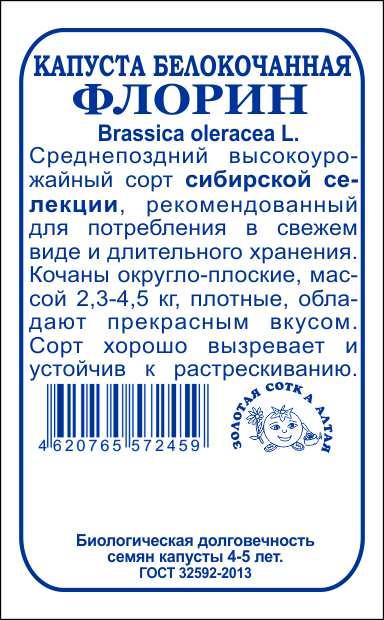 - Капуста белокочанная Флорин б/п /Сотка/ 0,5г/ среднепозд. 2,3-4,5кг длит. хранение/*1400