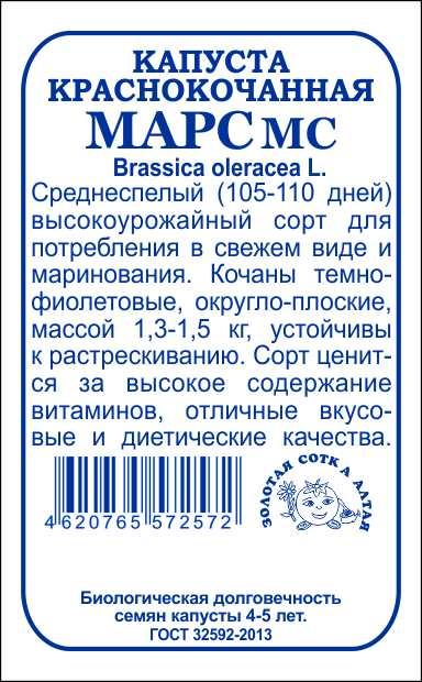 - Капуста краснокочанная Марс б/п /Сотка/ 0,3г/ среднесп. 1,3-1,5кг/*1200