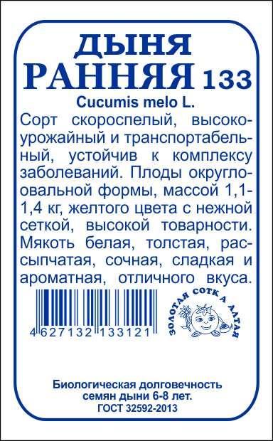 Дыня Ранняя б/п /Сотка/ 0,5г/ ранняя 1,1-1,4кг/*1200