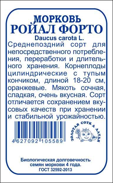 Морковь Ройал Форто б/п /Сотка/ 1 г/ среднепозд. 18-20см/*960