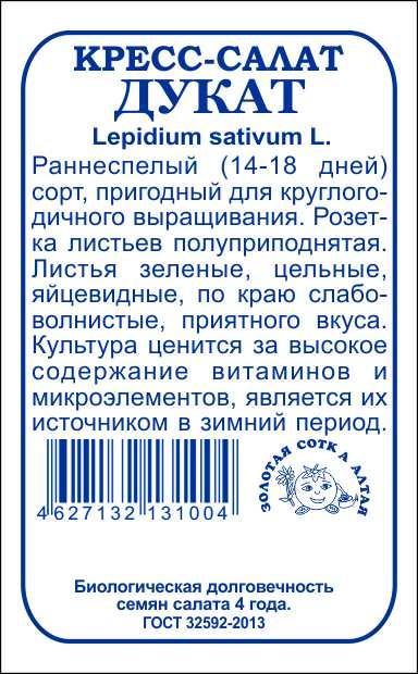 Кресс-салат Дукат б/п /Сотка/ 1г/ раннесп./*1200