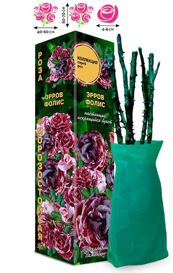 Куст высотой 60-70 см, слегка раскидистый, аккуратный, побеги с большими шипами. Листья темно-зеленой окраски, с зазубринами, небольшим глянцем. Используется для озеленения, на срезку и как горшечная культура. Цветы диаметром 4-6 см двухцветные: темно-бордовые с белыми полосами, густомахровые, формируются в соцветиях 5-10 цветков. Цветет очень обильно. Куст источает тонкий и ненавязчивый приятный аромат.