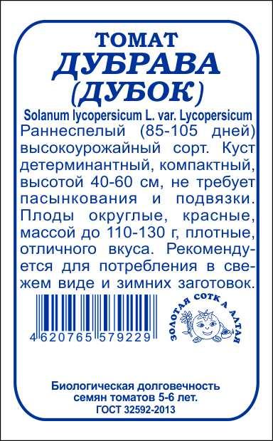 Томат Дубрава (Дубок) б/п /Сотка/ 0,1г/ ранний детерм. красн. 110-130г/*1400