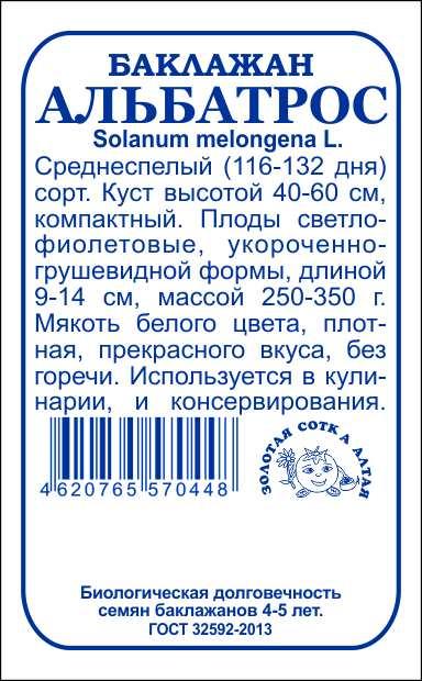 Баклажан Альбатрос б/п /Сотка/ 0,2г/ среднесп. 250-350г 9-14см/*1700