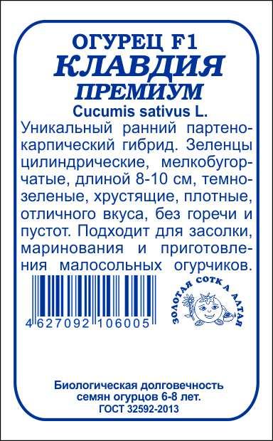 Огурец Клавдия Премиум F1 б/п /Сотка/ 5шт/ партен. раннесп. 8-10см/*2000