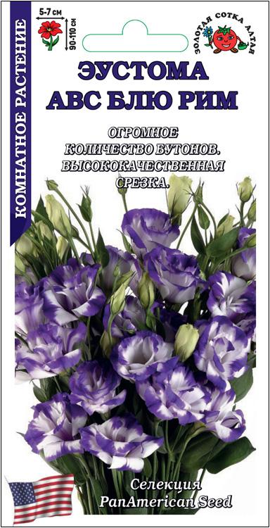 Ком: Эустома АВС Блю Рим /Сотка/ 5 шт/ бело-фиолет. h-110см d-7см PanAm/*500