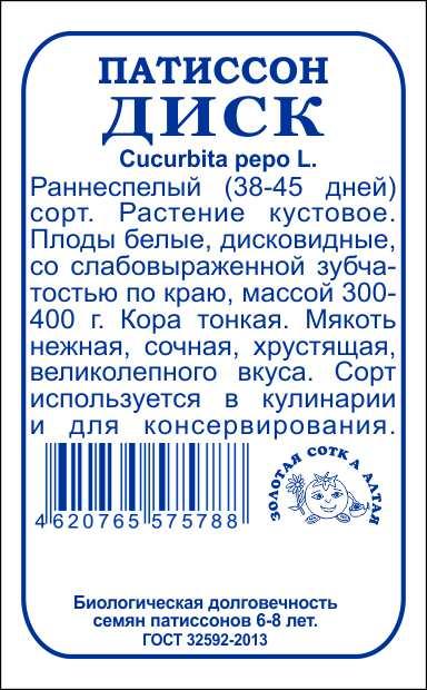 Патиссон Диск б/п /Сотка/ 1г/ скоросп. кустов. белый 300-400г/*960