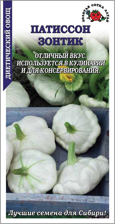 Раннеспелый (36-50 дней от всходов до начала плодоношения) сорт. Его плоды используют свежими в салатах, тушат, жарят и подают с овощным маринадом, квасят в бочках; маленькие патиссончики, консервированные с пряностями и овощами, – отменная закуска для гурманов. Выращивают рассадным (посев в горшки в апреле-мае) или безрассадным (посев в грунт в мае-июне) способом. Растение кустовое или полукустовое. Плод дисковидный с зубчатостью по краю, массой 270-540 г. Поверхность гладкая, белая. Кора тонкая, деревянистая, на разрезе белая. Мякоть белая, хрустящая. Частые сборы плодов стимулируют плодообразование. На хранение используют вызревшие плоды.