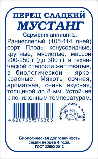 Перец Мустанг б/п /Сотка/ 0,2г/ раннесп. конусов. красн. 200-250г/*1200