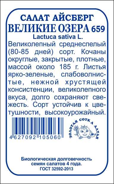 Салат Великие озера 659 б/п /Сотка/ 0,3г/ среднесп. кочанный 185г/*1400