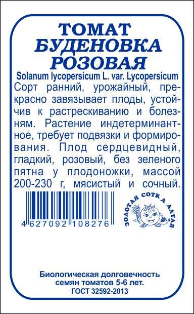Томат Буденовка розовая б/п /Сотка/ 0,05 г/ ранний индет. 200-230г/*2000