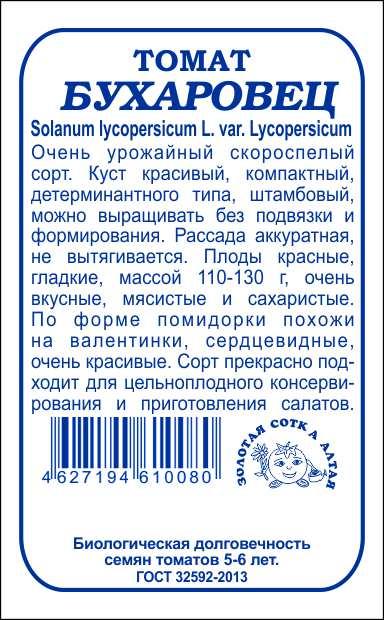Томат Бухаровец б/п /Сотка/ 0,1г/ скоросп. детерм. красный110-130г/*1700