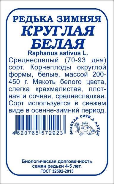 - Редька Белая круглая зимняя редька б/п /Сотка/ 1г/ среднесп. 200-450г /*1200 шт в кор
