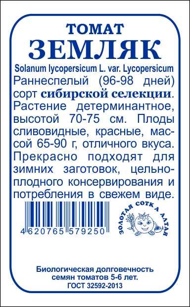 Томат Земляк б/п /Сотка/ 0,1г/ ранний детерм. красн. 65-90г/*1700