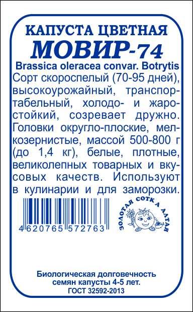 - Капуста цветная Мовир-74 б/п /Сотка/ 0,3 г/*1400