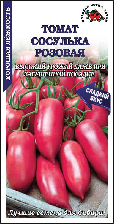 Среднеранний (110 дней) сорт селекционеров АФ «Сибирский Сад» для открытого и защищенного грунта. Характеризуется крупными розовыми плодами, 100% завязываемостью в жару и холод, равномерно отдачей урожая в течение летнего сезона. Растение индетерминантное, высотой до 1,8м. Первая цветочная кисть закладывается над 7-8 листом. В каждой кисти формируется до 8 крупных плотных томатов, удлиненно-сердцевидной формы, интенсивно розой окраски, без зеленого пятна у плодоножки, массой до 650 г. Мякоть плодов нежно розовая, плотная, сочная, с малым количеством семян. Свежий аромат и отличный вкус с приятной кислинкой обеспечивают отличные качества свежих салатов и томатопродукции. Сорт урожайный, с каждого растения можно получить до 5 кг товарных плодов.