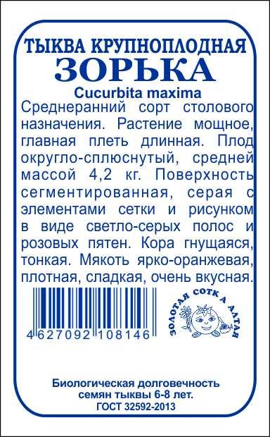 Тыква Зорька крупноплодная б/п /Сотка/*500