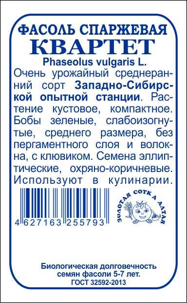 Фасоль Квартет б/п /Сотка/ 3 г /*800