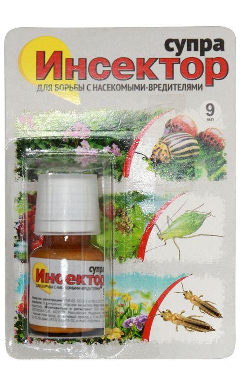 Пестицид Инсектор Супра, КС (50 г/л тиаметоксама). Инсектицид отличается мощным системным действием — проникает в листья уже через несколько часов и защищает растение до 2-3 недель, включая молодой прирост. Активное вещество препарата — тиаметоксам — считается одним из самых эффективных в своем классе, в т. ч. потому, что вредителям сложнее выработать к нему устойчивость. Особенность препарата еще и в том, что после обработки он не перемещается по растению в клубни и не накапливается в них. Сохраняет защитное действие в дождливую погоду (уже через 6–8 часов после обработки).