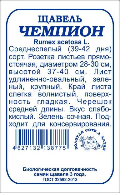 Щавель Чемпион б/п /Сотка/ 0,5г/ среднесп. /1400