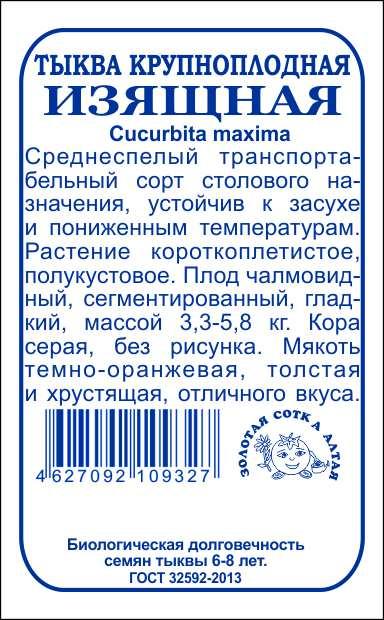 Тыква Изящная б/п /Сотка/ 2г/ среднесп. 3,3-5,8кг серая/*700