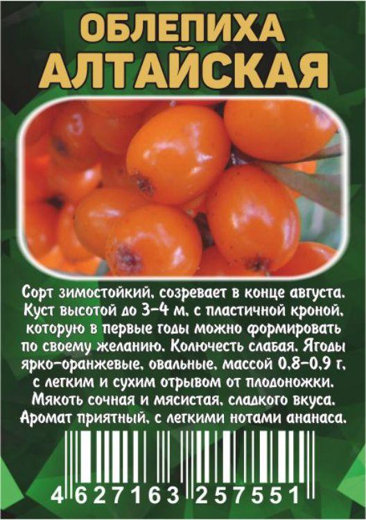 Сорт зимостойкий, созревает в конце августа. Куст высотой до 3-4 м, с пластичной кроной, которую в первые годы можно формировать по своему желанию. Колючесть слабая. Ягоды ярко-оранжевые, овальные, массой 0,8-0,9 г, с легким и сухим отрывом от плодоножки. Мякоть сочная и мясистая, сладкого вкуса. Аромат приятный, с легкими нотами ананаса.