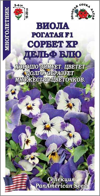 - Виола Сорбет Дельф Блю /Сотка/ 5шт/ рогатая бело-гол. h-20см d-4см PanAm/*500