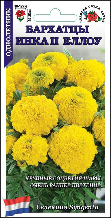 - Бархатцы Инка II Еллоу /Сотка/ 5шт/ прям. 35см, d-12см