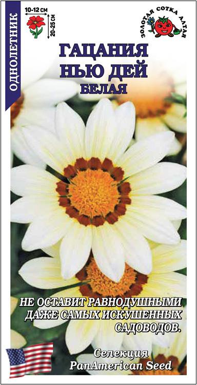 Гацании серии New Day компактны, отлично подходят для загущенных посадок, держат цветок открытым до позднего вечера. Кустик крепкий, ветвистый, шириной 15-20 см. Соцветия крупные, белоснежные с темным кольцом вокруг центра, искрятся словно звездочки. Используют для украшения клумб, бордюров, альпинариев, высаживают в вазоны, горшки и ящики.