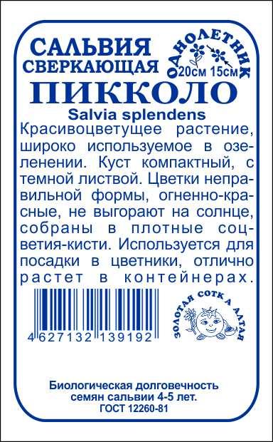 - Сальвия Пикколо сверкающая б/п /Сотка/ 0,05г/ красн. h-20cм, d-15см/*2000
