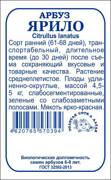 Арбуз Ярило б/п /Сотка/ 0,5 г/ раннесп. 4,5-5 кг/*1200