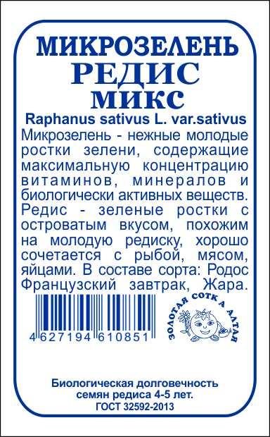 Микрозелень Редис микс бп /Сотка/ 5г/*500