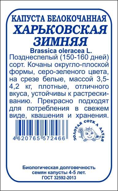 Капуста белокочанная Харьковская зимняя б/п /Сотка/ 0.5 г/*1200