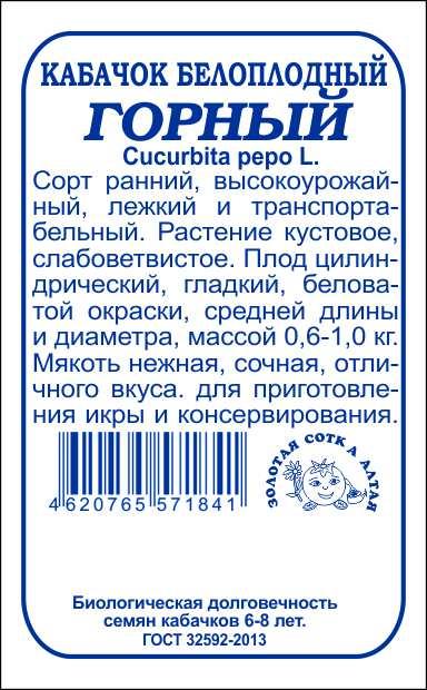Кабачок Горный б/п /Сотка/ 2 г/ран.0,6-1,0кг/*700