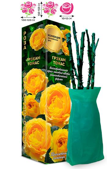 Английская роза Грэхам Томас - одна из самых популярных английских роз. Цветы необычайно насыщенного, чистого желтого цвета, махровыые, в форме чашевидной розетки напоминающие пионы, 10-12 см. Распускаются по одному или в кистях по 3-7 шт, при полном роспуске в центре цветка видны тычинки. Аромат средний или насыщенный. Куст мощный, густой, раскидистый, разветвленный с поникающими побегами, темно-зеленого цвета, крупной блестящей листвой. Высота куста от 130 до 150 см, может использоваться как небольшая плетистая роза. Цветет очень обильно. Идеально подходит для заборов, стен, арок. Переносит полутень. Устойчивость к болезням хорошая, зимостойкая.