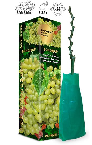 Виноград киш-миш Володар (ран, св-жёлт, овал, 3,5-4,5г, 600-800г)