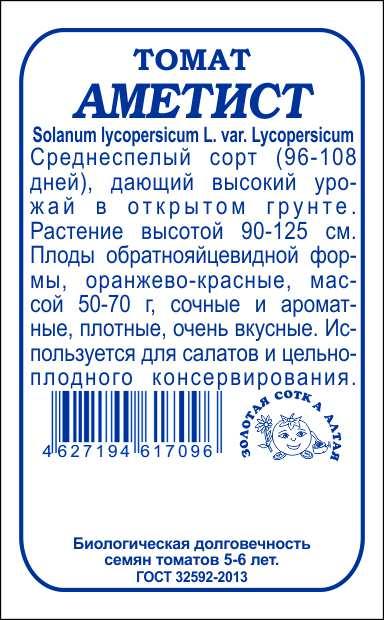 Томат Аметист б/п /Сотка/ 0,1г/ среднесп. 50-70г /*1700