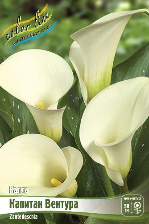 - Калла Капитан Вентура /2шт/ КЛ белый, лист зеленый с белым крапом, Н-50см