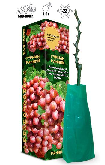 Виноград Гурман (ран, овал, розов, 8-9г, 500-800г)