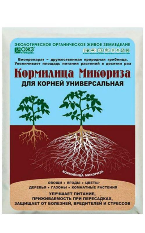Кормилица Микориза обеспечит ваши растения верными друзьями на всю жизнь. Он содержит дружественные растениям грибы, которые формируют с корнями взаимовыгодный симбиоз. Благодаря этому всасывающая способность корневой системы возрастает на порядок, и растения значительно легче получают воду и питательные вещества. Кроме того, полезные грибы своим присутствием не дают развиваться болезнетворным микробам – это настоящий щит от болезней и стрессов.В составе препарата имеются как элементы микоризного гриба, так и колонизированные им фрагменты корней, что в разы повышает его эффективность и стабильность. Микориза, развивающаяся от живого мицелия, – самая эффективная, поскольку для роста ее достаточно слегка увлажнить. Подавляет развитие фитопатогенов и вредителей. Снижает потребность растений в регулярном поливе и удобрении почвы минеральными веществами, особенно фосфатами. Повышает выживаемость саженцев при пересадке, в условиях засухи и низких температур.