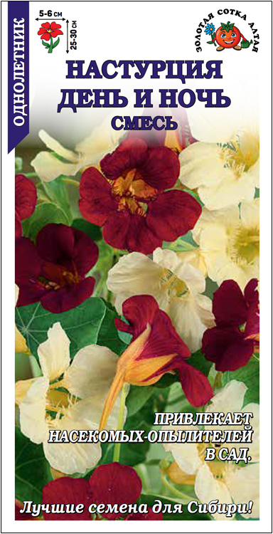 Настурция День и ночь /Сотка/ 0,5г/ крем. борд. h- 25-30см d-5-6см/*500
